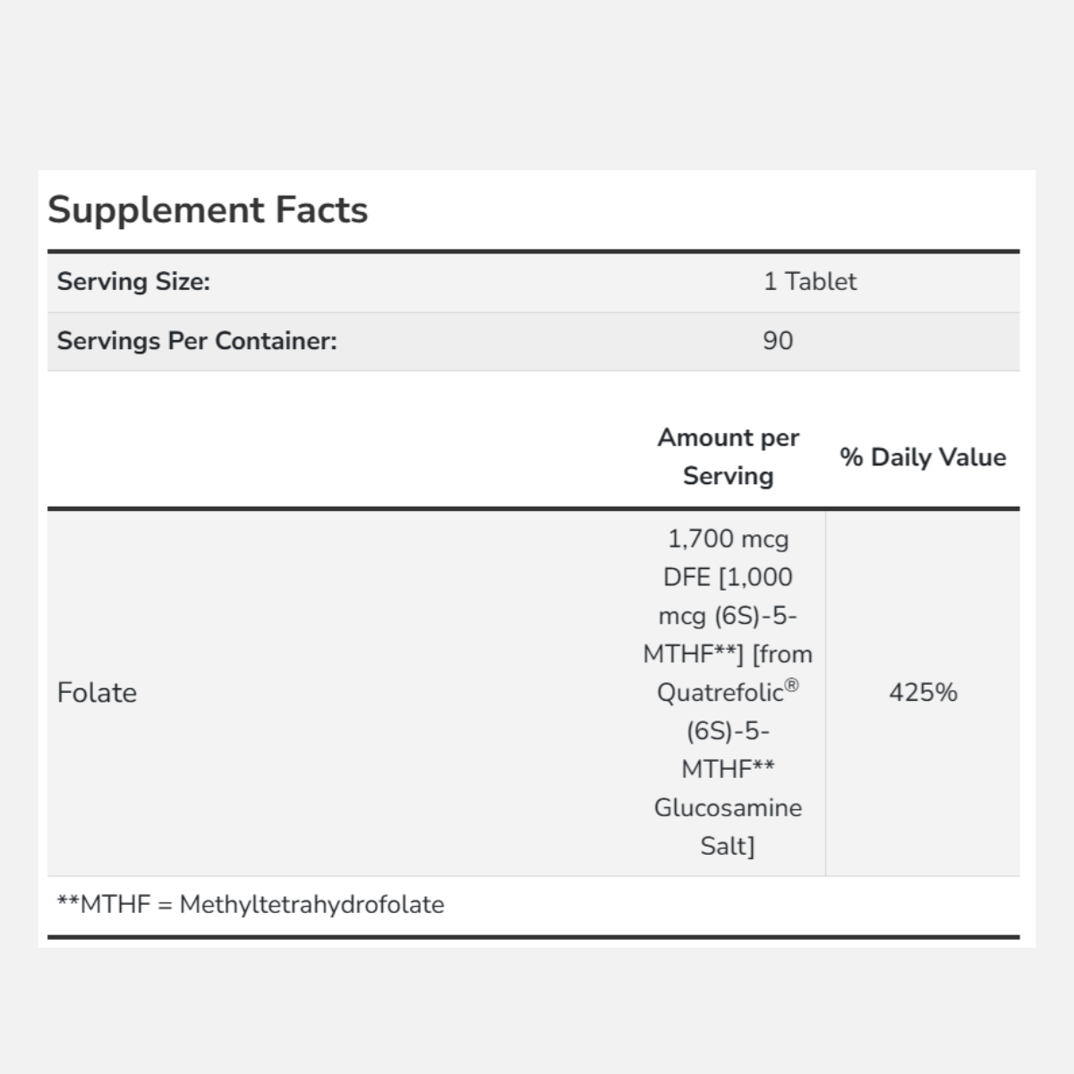 NOW® utiliza Quatrefolic®, una forma patentada de Metilfolato con biodisponibilidad superior frente al folato presente en la dieta, asegurando que tu cuerpo lo aproveche al máximo.