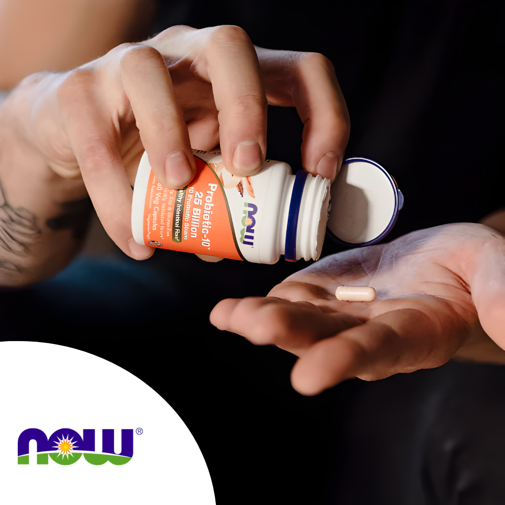 NOW PROBIOTIC 10 es un suplemento de alta potencia que combina 10 cepas probióticas clínicamente validadas, seleccionadas por su capacidad para colonizar el tracto gastrointestinal y promover un equilibrio saludable de la flora intestinal. Formulado con bacterias resistentes al ácido estomacal, este probiótico favorece la digestión, la función inmunológica* y el bienestar general.